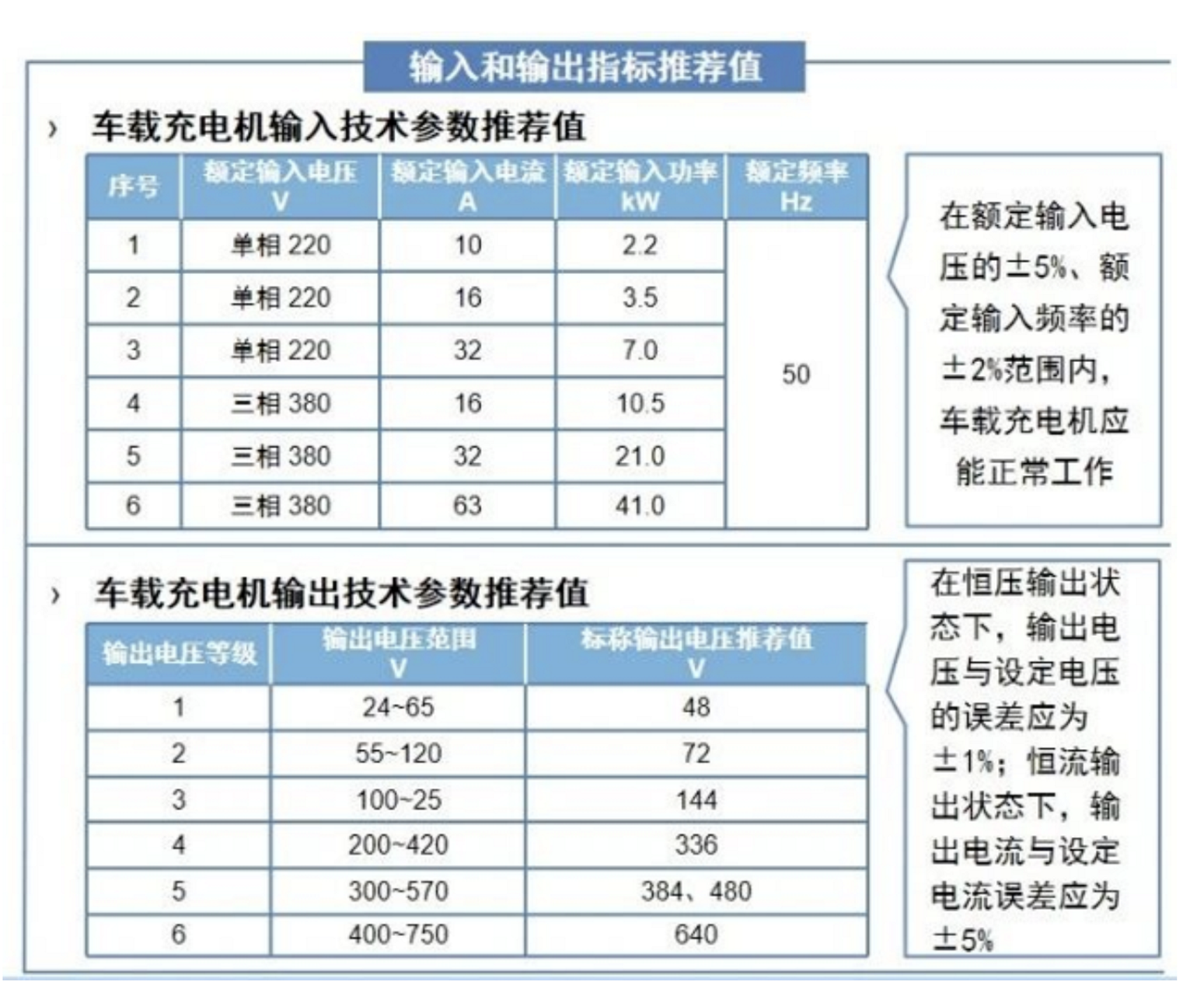 QC/T 895-2011标准中对输入电压、电流及输出电压推荐值等有提出明确的要求。