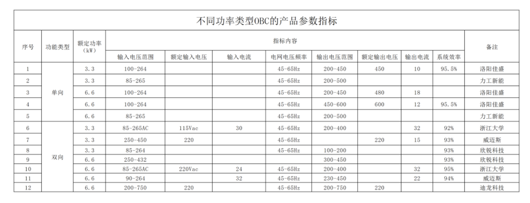 车载OBC的技术指标主要包括输入电压、工作效率、功率因素、谐波、输出纹波、输出电压和输出电流等。